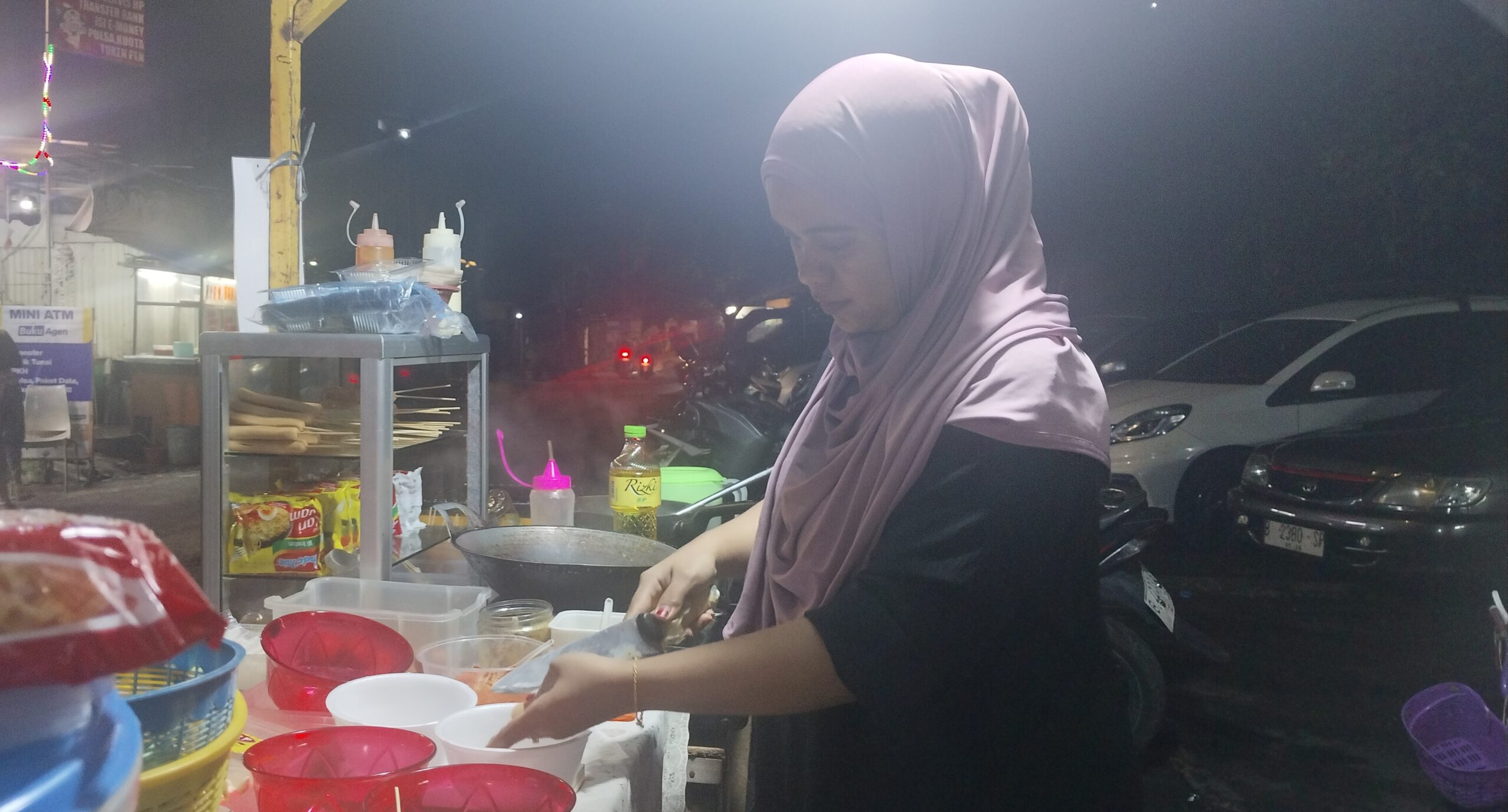 Pemilik lapak, Rina sedang melayani pelanggan