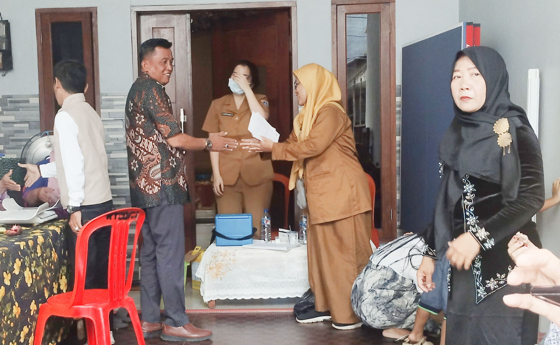 ketua RW 02 Mursan Ganes (Batik hitam) pantau kegiatan posyandu Sekar Melati II