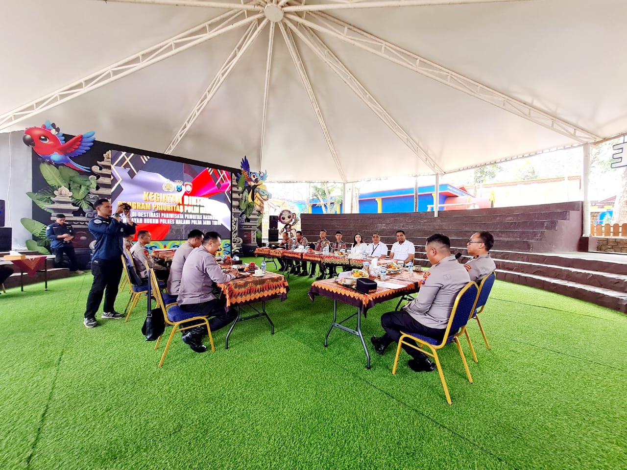 Lebih lanjut, AKBP Danang memaparkan inisiatif pemberdayaan sistem pengamanan melalui pemasangan CCTV di area wisata yang terhubung langsung dengan pusat komando Polres Malang.