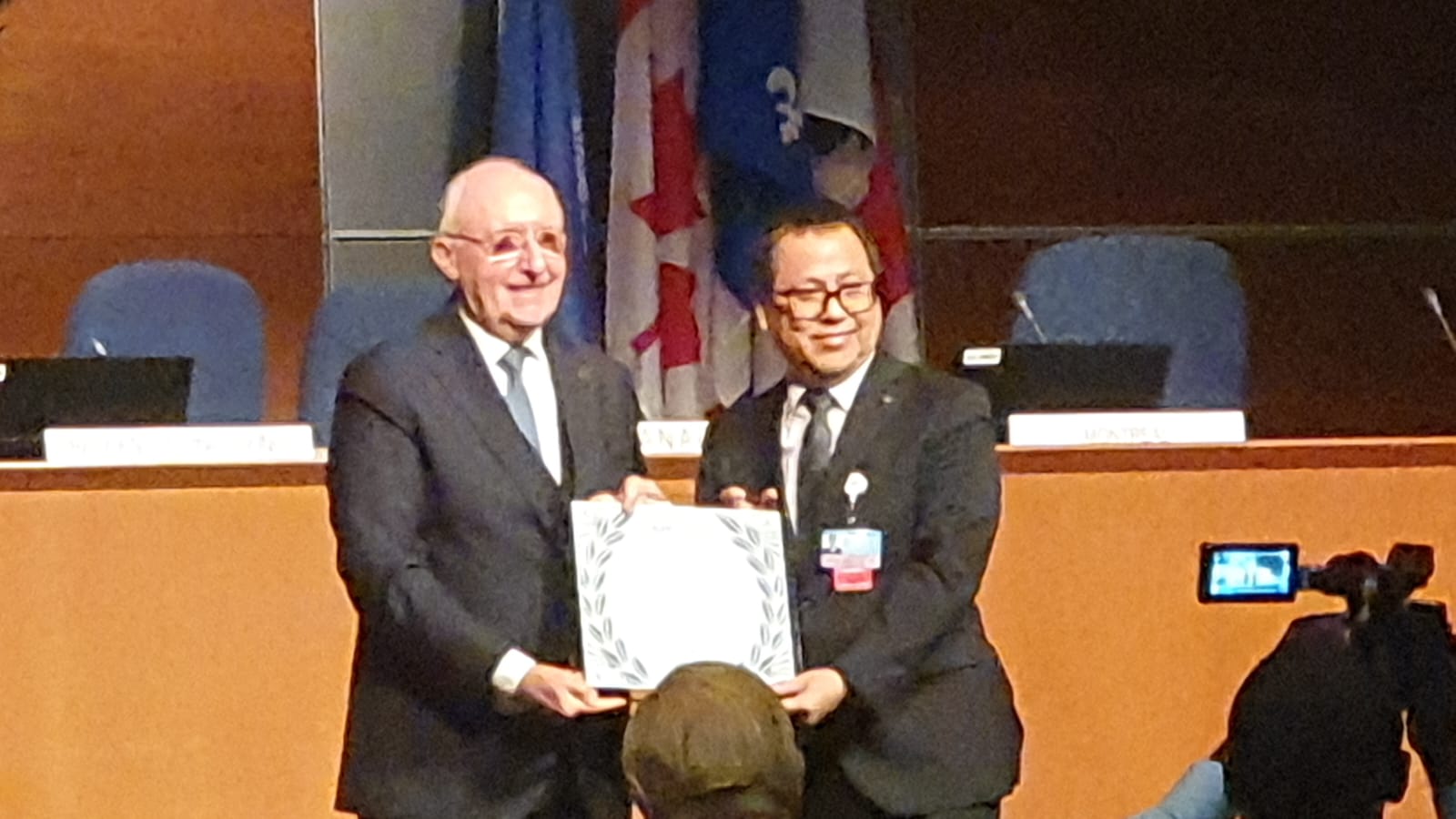 sesi pembukaan ICAO 42nd General Assembly di Montreal Selasa (23/9), Indonesia meraih penghargaan internasional bergengsi berupa Council President Certificate yang diberikan oleh Presiden International Civil Aviation Organization (ICAO), Salvatore Sciacchitano