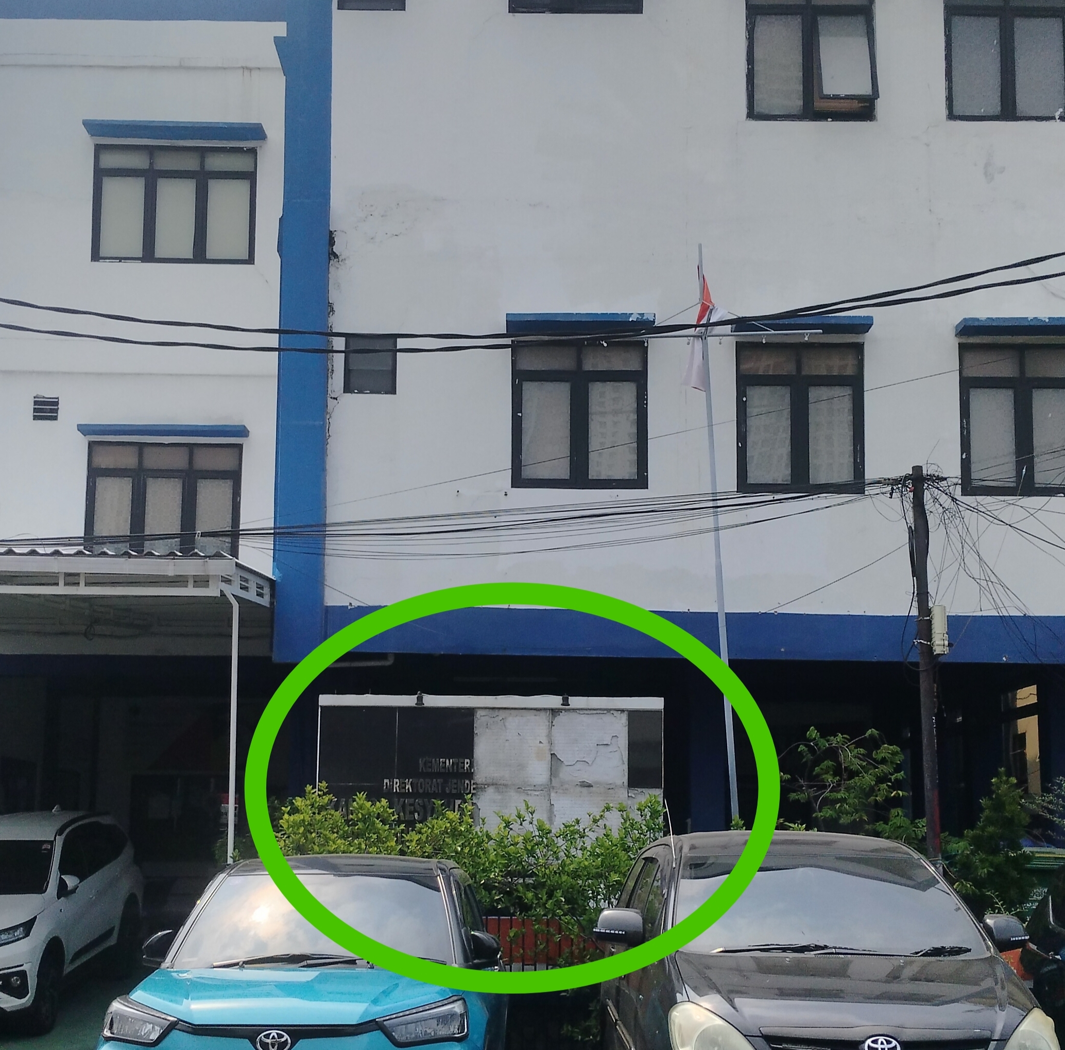 Salah satunya yang kami dapat adalah kantor layanan Kesyahbandaran dan Otoritas Pelabuhan (KSOP) Muara Angke yang terletak di Pluit, Penjaringan, Jakarta Utara. Nomenklatur KSOP Muara Angke hilang separuh, sehingga tulisan tak terbaca.