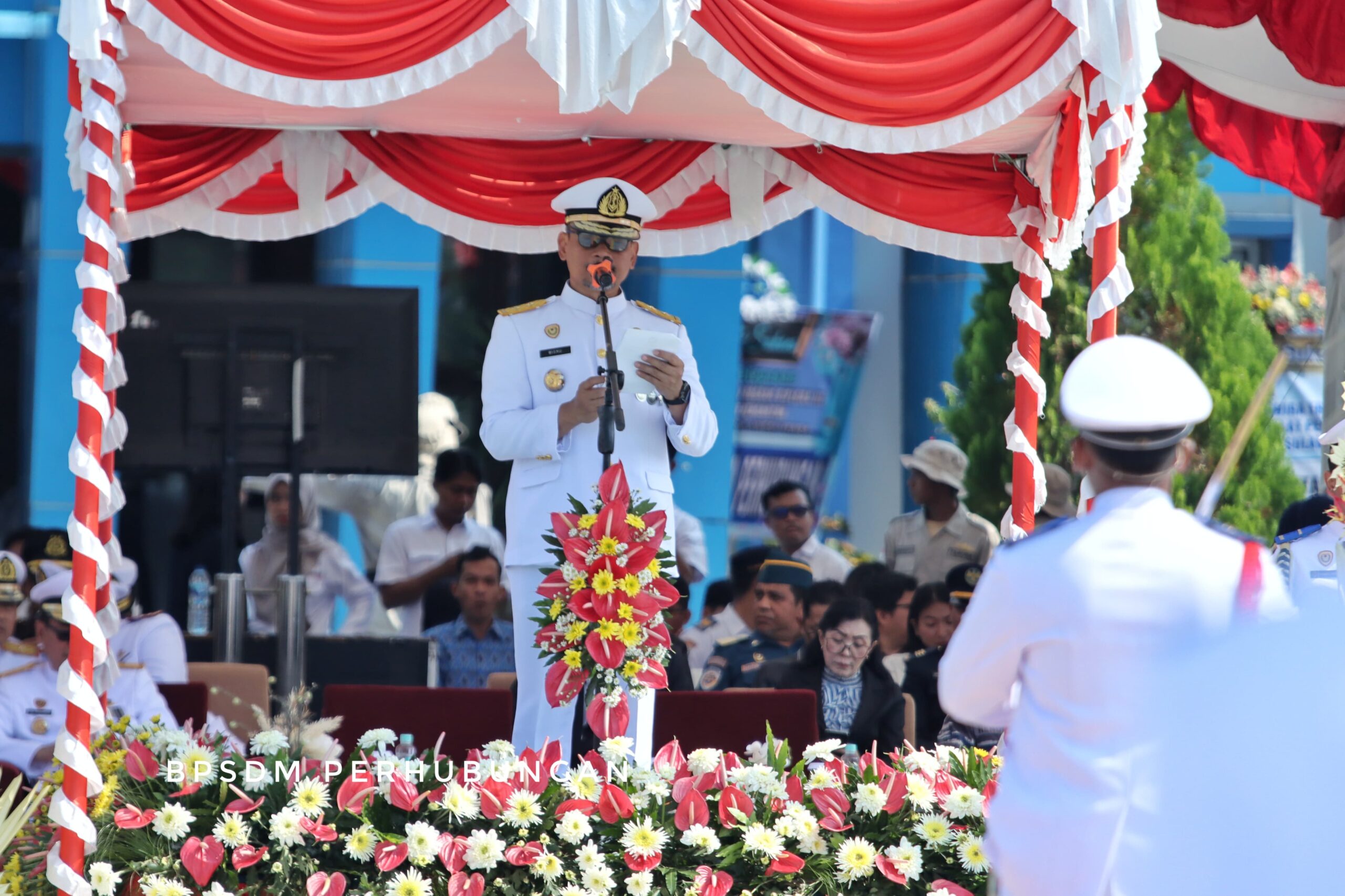 Minahasa Selatan, Ontimenusantara.com-Seragam Putih dan Seragam Navy Blue bukan hanya menjadi kebanggaan personal atau kebanggaan pribadi tetapi harus menjadi bukti dalam diri Pelaut terdapat kekuatan mental yang tangguh, profesionalisme, kompetensi yang harus bisa dipertanggungjawabkan. Hal ini disampaikan Sekretaris Badan Pengembangan Sumber Daya Manusia Perhubungan (BPSDM), Capt. Wisnu Handoko saat memimpin Upacara Wisuda dan Pelepasan Perwira Transportasi lulusan Politeknik Pelayaran (Poltekpel) Sulawesi Utara pada Sabtu. (04/10)