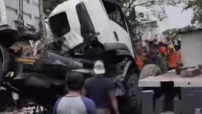 laka lantas truck trailer tabrak 3 motor 2 orang meninggal